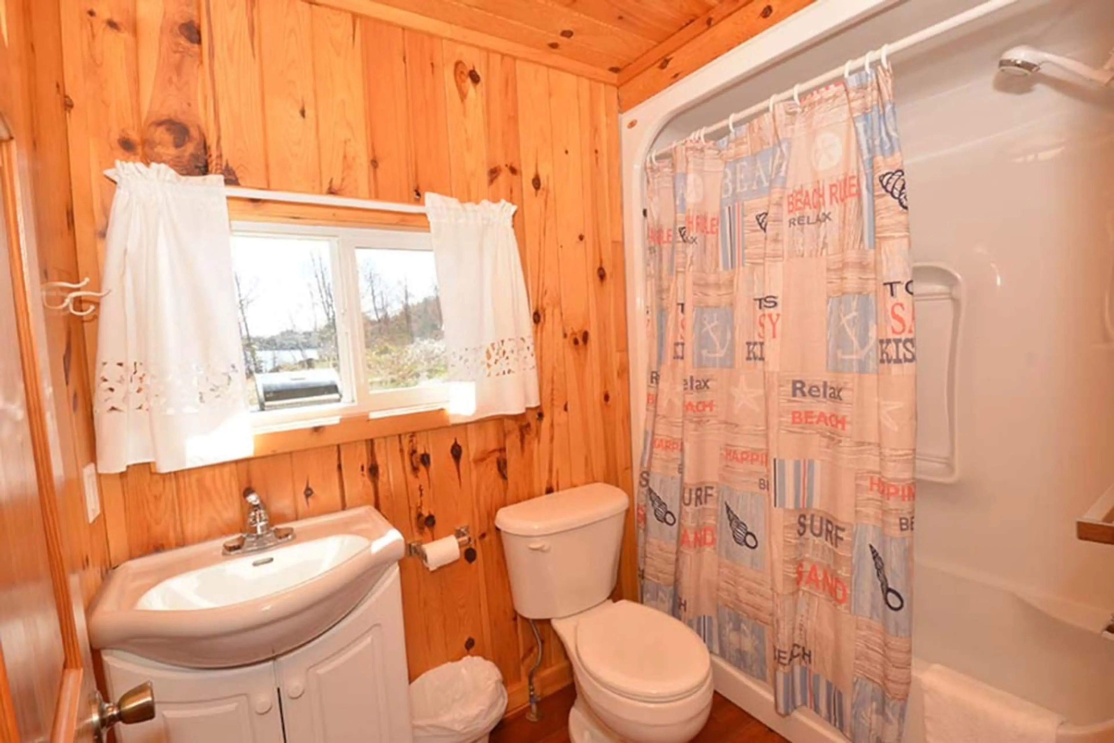 Red Wood Retreat is renovated in locally sourced white pine with red pine floors. A large picture window gives you waterfront views of Clear Lake. Outside you can enjoy a private deck with privacy wall, picnic table, Napoleon gas grille, private fire pit, and private dock with swim ladder. 2 bedr...